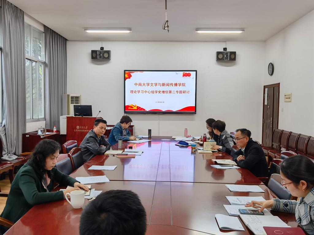 2021年4月12号下午,tapplay官网党委理论学习中心组围绕“学史增信”主题开展党史学习教育第二次专题学习研讨。学院全体领导班子成员参加学习研讨,院党委书记罗军飞主持会议。
