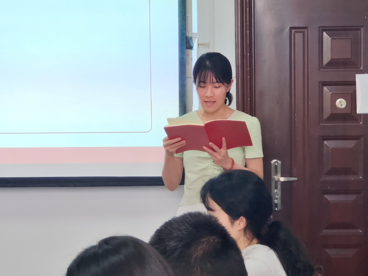 支部副书记王雨墨带领全体党员学习、回顾了党课内容,并发表了见解体会。王雨墨指出,作为一名党员要用言行表明自己是中国工人阶级的代表,肩负时代的历史使命,树立全心全意为人民服务的思想。她呼吁党员们坚守党性修养,不断完善自我,全面发展,积极践行党员的责任和义务。