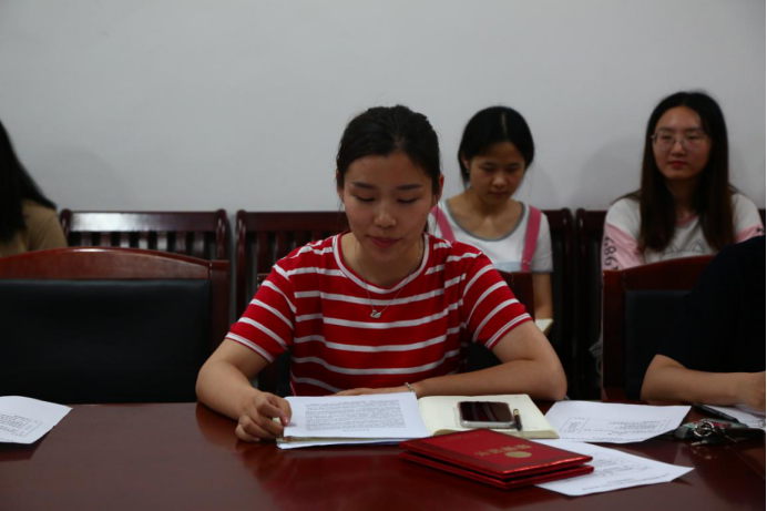 本科生新闻数版党支部刘娜作为新发展党员代表发言。她为能在中国共产党成立98周年之际,光荣地加入中国共产党这个伟大的组织而激动。她说,在组织上入了党,就确定了人生的坐标,进而还要从思想上入党,要更加严格要求自己,时刻牢记党“全心全意为人民服务”的宗旨,听从党的教诲,服从党的决议,遵守党的章程,为党的事业贡献出自己的青春和热血。