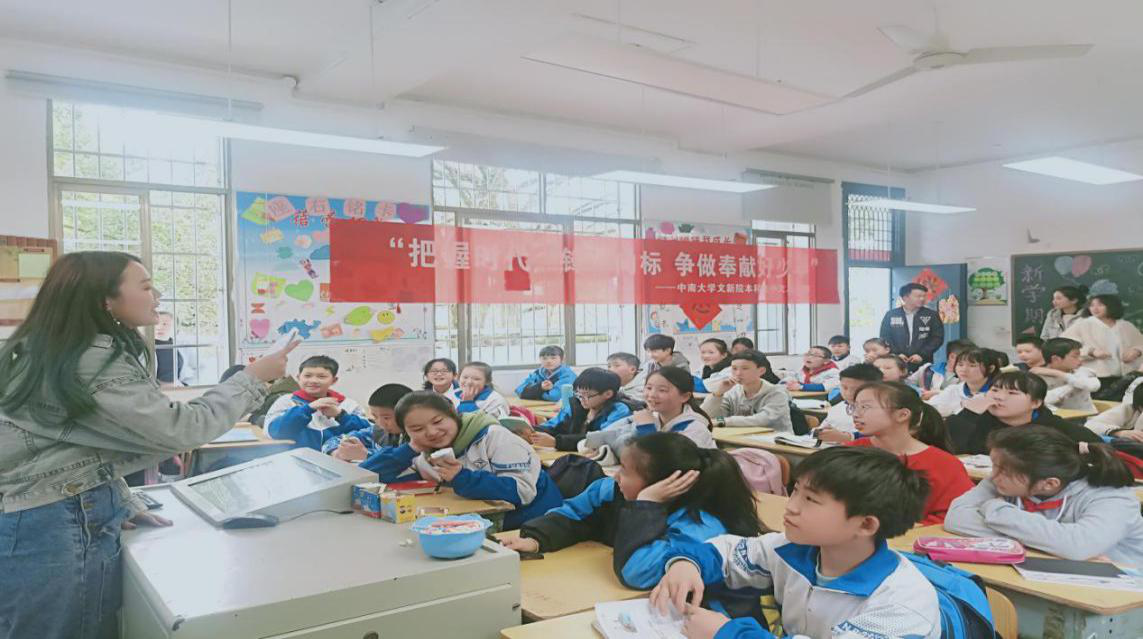 提问间隙,志愿者成薇还邀请同学们一齐唱歌曲《学习雷锋好榜样》。同学们很羞涩,志愿者们用手打着节拍,一句一句耐心教导。在歌声的感染下,同学们不由自主地挺直了腰板,歌声也越来越洪亮,教室里充满欢声笑语,其乐融融。
