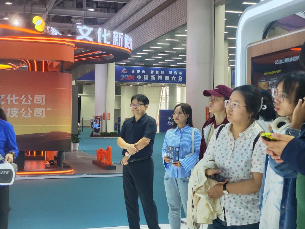 同学们参观了人民日报社、新华社、中央广播电视总台、湖南广电、中国(长沙)马栏山视频文创产业园等单位的展区,对新媒体技术进行了亲身的体验,并与相关媒体从业人员进行了深入的交流,从而对技术与传播的关系有了更多的思考。