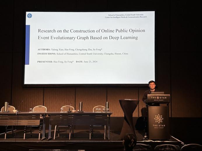 2024年6月20日至24日,第74届国际传播学会年会(74th Annual International Communication Association Conference,ICA 2024)在澳大利亚黄金海岸(Gold Coast)举行。tapplay官网智媒传播研究中心团队撰写的论文被大会“Information Systems”分论坛录用并作报告。论文标题:Research on the Construction of Online Public Opinion Event Evolutionary Graph Based on Deep Learning,作者:肖亚龙、冯皓(传媒系硕士研究生)、朱承璋、冯杰(通信作者)。