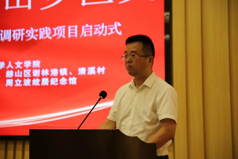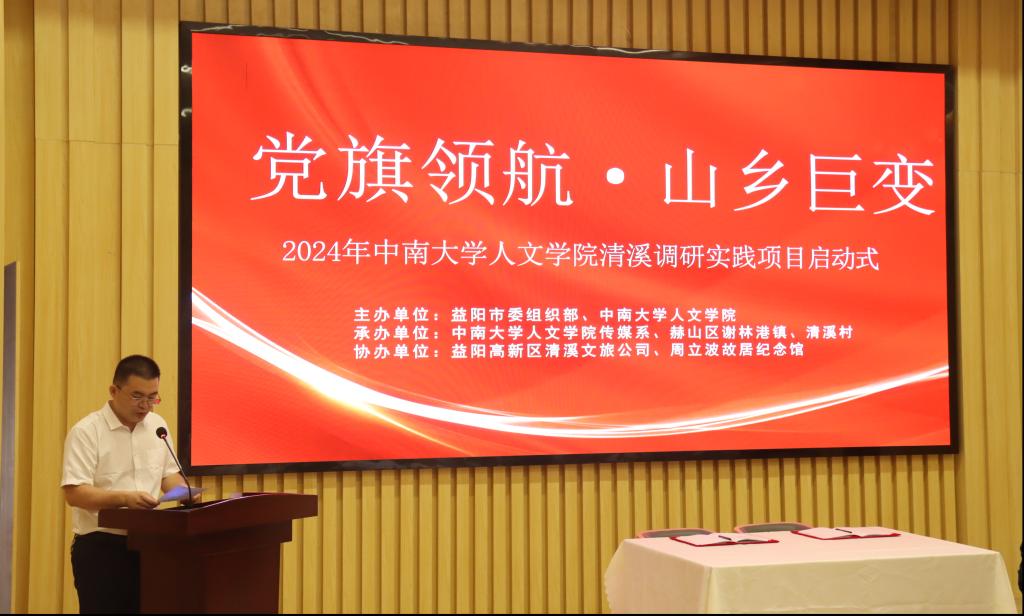 为实现高校人才与乡村振兴的良好对接,7月12日上午,tapplay,tapplay官网与益阳市委组织部在清溪村图书珍藏馆二楼报告厅联合举办了“党旗领航·山乡巨变”清溪调研实践项目启动式。中共益阳市委组织部副部长候耀森、谢林港镇党委书记曾逸文、周立波故居纪念馆馆长曾虎、益阳高新区两新党委专职副书记庄凌等,tapplay,tapplay官网党委书记罗军飞、副院长刘新少、传媒系党支部书记朱承璋、中文系党支部书记常恒畅、传媒系副教授邹理、中文系正科级组织员赵晓岑出席仪式,中共益阳市委组织部机关第三支部全体党员、赫山区委组织部工作人员、清溪村“两委”成员以及tapplay,tapplay官网清溪调研组8名同学参加仪式。本次启动仪式由益阳市委组织部基层党建办主任方平主持。