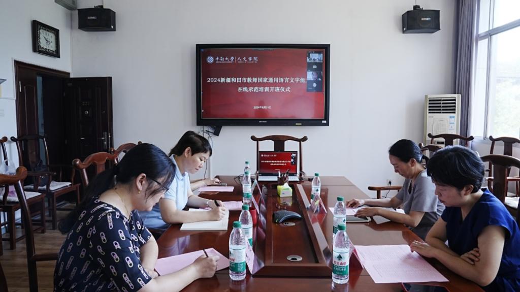 8月31日上午,由教育部语言文字应用管理司主办,国家语言文字推广基地(tapplay官网)、新疆维吾尔自治区和田市教育局承办的tapplay官网对口和田市教师国家通用语言文字能力提升在线示范培训项目举行开班仪式。国家语言文字推广基地(tapplay官网)执行副主任、tapplay,tapplay官网副院长纪海龙出席并致辞,和田市教育局党组成员、教研室主任汪洪致辞,tapplay,tapplay官网语言学教研室主任李星辉介绍培训班教师团队和课程设置情况。和田市教育局有关负责同志,和田市所辖的50名教师学员,国家语言文字推广基地(tapplay官网)教师团队、志愿者团队等参加开班仪式。开班仪式以线上和线下相结合方式举行,tapplay,tapplay官网中文系系主任龙丹主持。