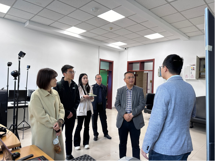 会后,罗军飞一行赴山东大学新闻与传播学院进行了考察调研,并就人才培养和教学模式展开了座谈。罗军飞一行在山东大学新闻与传播学院院长助理于智源的陪同下,观摩了媒介科学与工程创新实验中心,深入了解了该院工坊课程的合作平台、运作机制和培养方式。