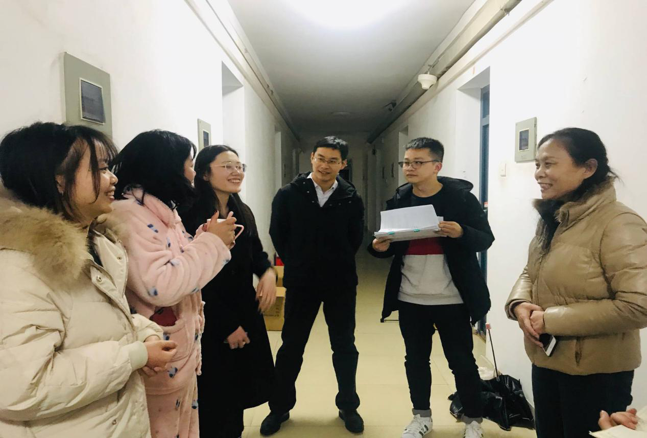 2月24日,文学与新闻传播学院党委罗军飞书记、邓栗副书记率学工办辅导员在新学期伊始走进学生宿舍,看望慰问返校归来学生。
