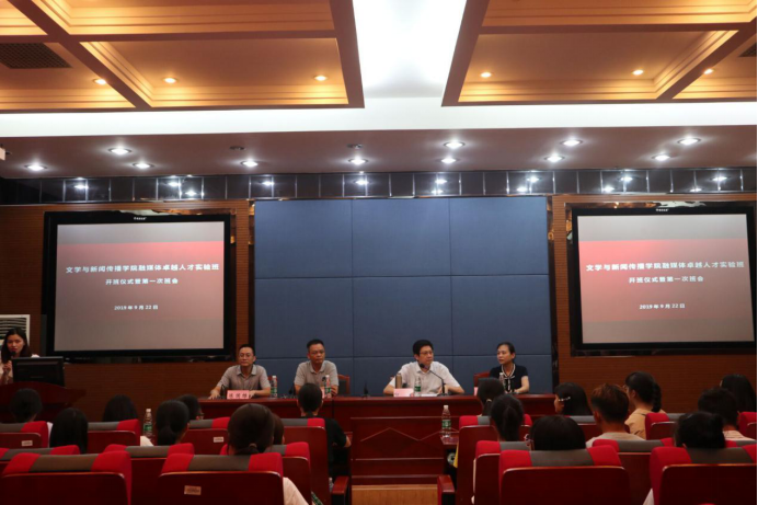 9月22日下午,文学与新闻传播学院融媒体卓越人才实验班开班仪式暨第一次班会在文法楼329室举行。文新院党委书记罗军飞教授,文新院院长、融媒体实验班班导师白寅教授,文新院党委副书记邓栗副教授,文新院副院长陈国雄副教授教授,本科教务处曹文珍老师、融媒体实验班副班导师常恒畅老师出席本次仪式,文新院2019级辅导员周婷老师主持本次仪式,31位融媒体实验班新生参加此次仪式。