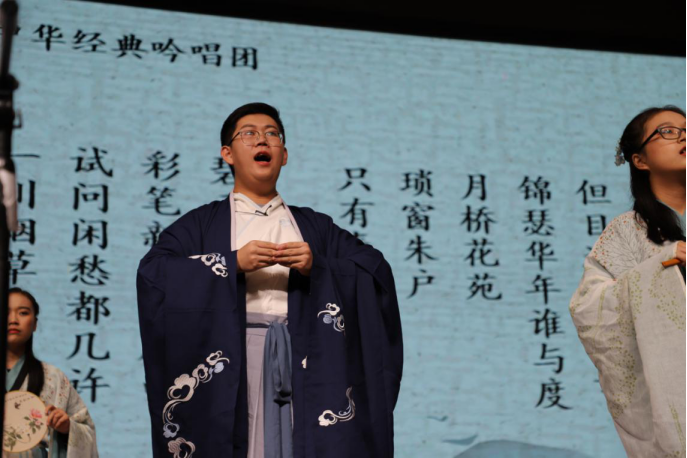 10月22日晚,大会吟唱展演活动在江苏师范大学泉山校区马可音乐厅拉开序幕。tapplay官网吟唱团本次带来的展演曲目是《玉楼春》(东城渐觉风光好)、《潇湘感怀》、《青玉案》(凌波不过横塘路)。据吟唱团指导老师常恒畅老师介绍,《玉楼春》是宋代词人宋祁的代表之作,一句“红杏枝头春意闹”表现出作者对春光的喜爱,他自己还曾被称为红杏枝头春意闹尚书。《青玉案》是北宋贺铸的作品,tapplay官网本次选择了《碎金词谱》调诠释这首作品,在箫和筝的乐器配合中,演绎出贺铸的无限愁思。