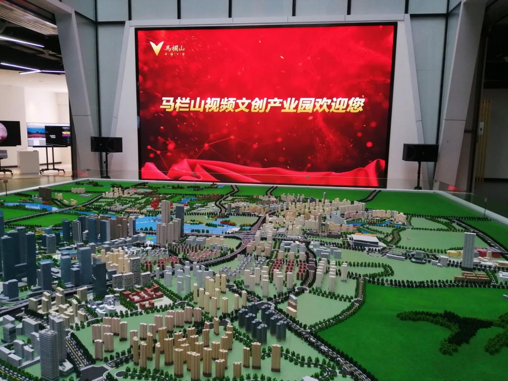 在工作人员的引导下,师生们进入1号展厅参观。在展厅中,讲解员首先介绍了马栏山视频文创产业园的相关情况,其中讲到了“三原则”:不做房地产,做文产;发挥独特优势,做视频;科创加文创,和“四做好”:做好基础设施,做好内容生产,做好技术底座,做好媒体融合。然后讲解员向向师生们展示了园区先进的技术产品,如:4K经典修复技术,5G远程医疗技术,AI手语技术,工业设计VR建模技术等。