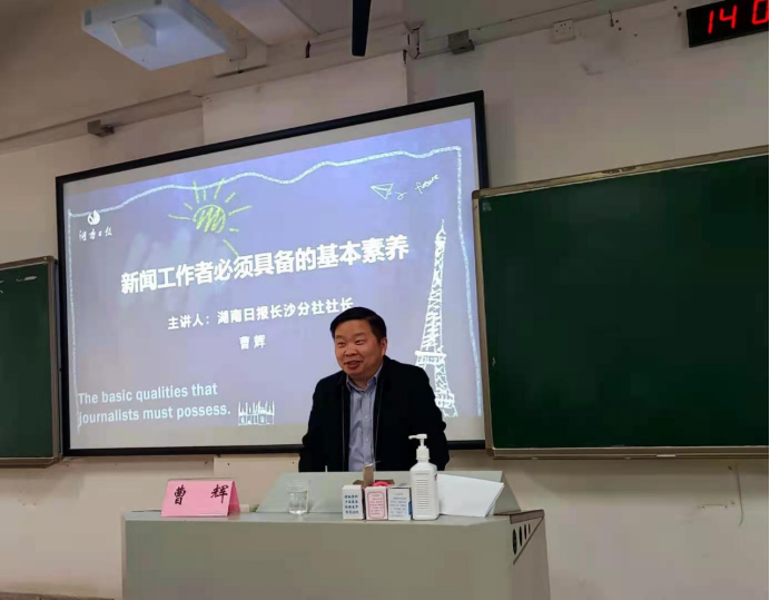 2021年3月27日下午14点,湖南日报社长沙分社社长曹辉应邀来tapplay官网讲学,于新校区B110教室为tapplay官网师生带来了一场精彩纷呈的讲座。本场讲座主题为“新闻工作者必须具备的新闻素养”,由tapplay官网文学与新闻传播学院纪海龙老师主持,得到了广大师生的积极响应。