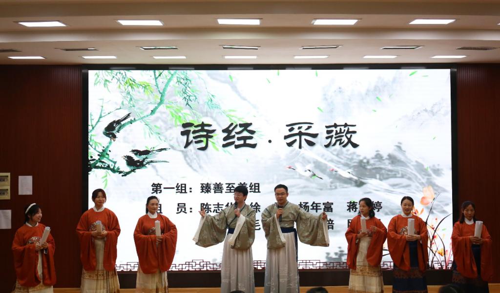 典礼开场,培训班学员分小组进行汇报展示。六个小组的学员从中华优秀传统文化中汲取养分,结合本次培训所学内容,分别以吟唱、朗诵、民歌等多种形式进行了成果展示。
