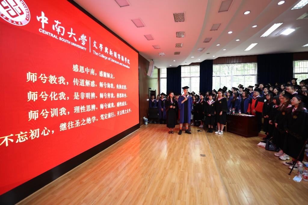 现场还举行了毕业生谢师礼,全场起立朗读了谢师词:“感恩中南,感谢师友。师兮教我,传道解惑。师兮诲我,鱼渔双授。师兮化我,是非明辨。师兮育我,善恶取舍。师兮训我,理性思辨。师兮诫我,感性成长。不忘初心,继往圣之绝学。笃定前行,开万世之太平”,通过这种方式,毕业生们对辛勤付出的老师们献上最真挚的感谢和最崇高的敬意。(文新院融媒体新闻中心供稿)