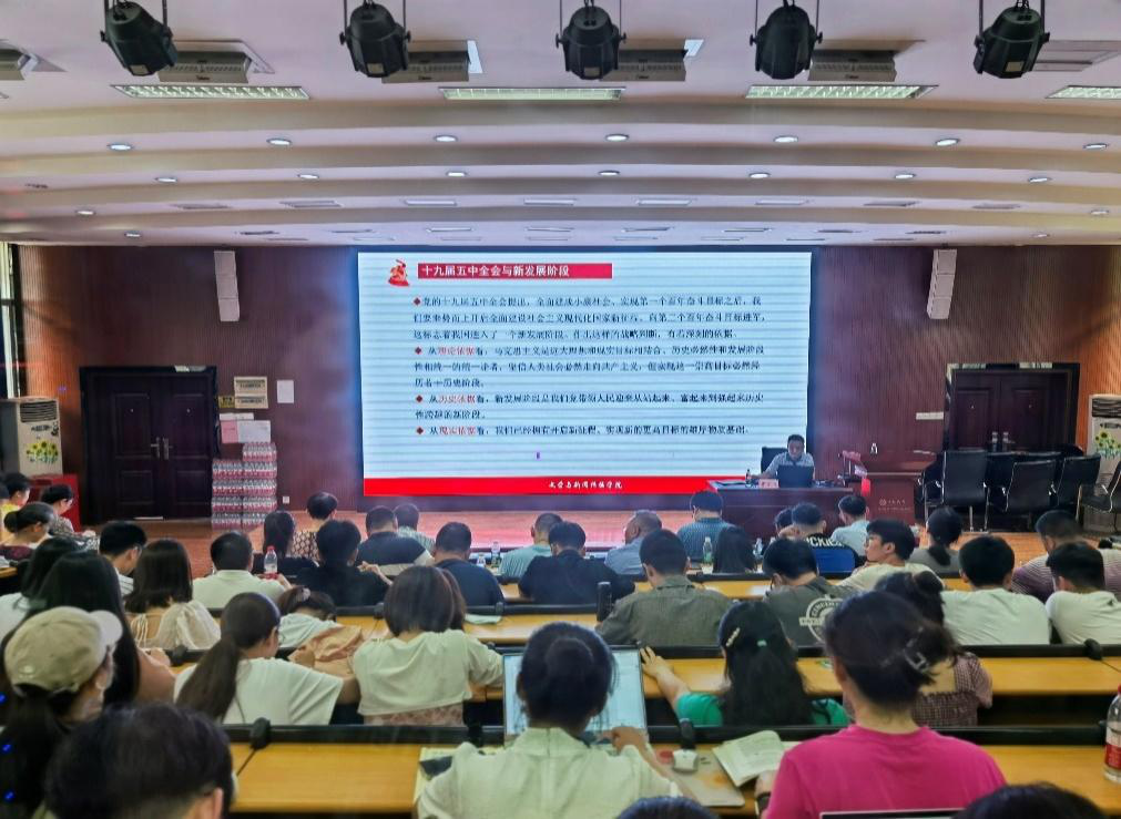 身逢使命,重任在肩。此次党课对于深入领会十九届五中全会精神、增强行动自觉、明确努力方向意义重大。参训教职工党员和学生党员认真听讲,收获颇丰。(文新院融媒体中心供稿)