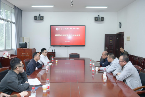 上午讲座开始前,刘新少副院长、易龙主任同王晓伟先生、马贤主任以及融媒发展研究中心的老师们在tapplay官网230会议室举办了融媒体发展研究中心老师座谈会,就县级融媒体发展研究进行了分析和探讨。