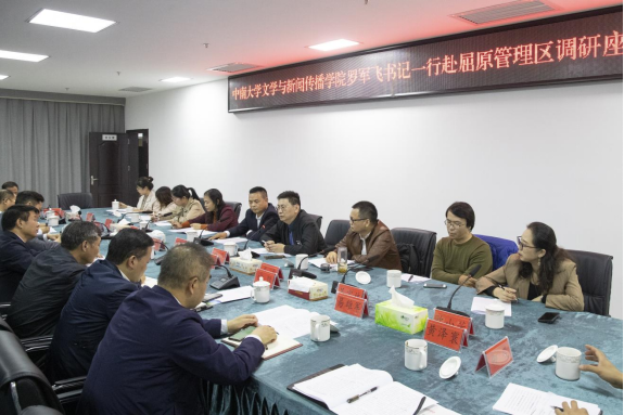 在高素质农民培训中心考察结束后,调研组与屈原管理区相关部门负责人进行座谈。屈原管理区党委委员、宣传部部长韩德辉对屈原宣传、教育、文化等工作情况进行了介绍并希望tapplay官网与屈原区在教育上建立深度合作,在文旅融合发展上提供智力支撑,并能为屈原区培养和推送融媒体人才。调研组成员依次发言分享感受与建议。