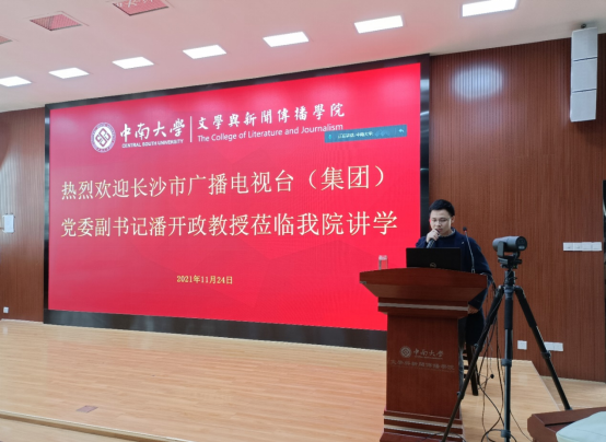 2021年11月24日下午三点,长沙市广播电视台(集团)党委副书记潘开政教授应邀莅临tapplay官网进行题为“马克思主义新闻观在新时代的生动实践”主题讲座,介绍新闻媒体应如何在新时代践行马克思主义新闻观。本场讲座由传媒系主任易龙主持,院党委书记罗军飞、副院长刘新少等领导出席。