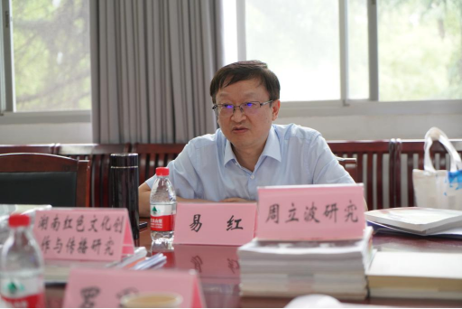 院长白寅首先向易红书记一行汇报了学院学科建设及整体发展相关情况,重点介绍了学院坚持以新文科建设为引领,积极推进文学与科技融合、文学批评与文学创作实践融合、文化与经济融合、文化与传播融合的“四个融合”发展理念及经验成绩。随后,学院领导班子成员对各自分管领域工作进行了简要汇报,并就学科调整相关工作表达了自己的意见与建议。