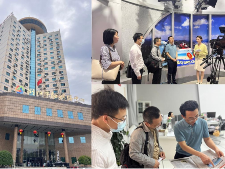 随后,调研团队来到位于10楼的995交通广播电台(即浏阳人民广播电台),着重参观浏阳“村村响”广播,了解到在疫情防控期间,“村村响”平台应急信息发布方面的重要作用。接着,团队参观了13楼的区域合作平台,负责人展示了浏阳搭建的湘鄂赣城市广播电视联盟、手机直播联盟、中国原创节目交流中心等区域性、全国性媒体融合平台在湘赣合作中工作成效。最后,团队来到位于14楼的浏阳日报社。《浏阳日报》是全省唯一保留公开刊号的县市报。讲解人员向调研团队展示了《浏阳日报》的采前一体策划、差异平台刊发,有效实现媒体融合后的创新升级。