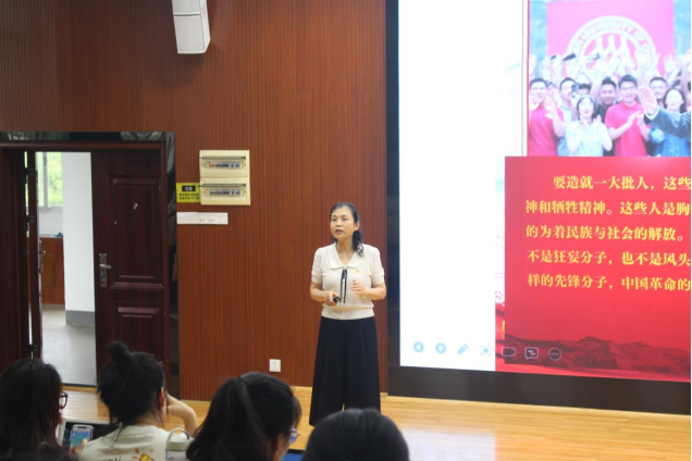 宣誓结束后,邓栗副书记为全体党员讲授以“扬青春力量 担时代重任”为题的党课。