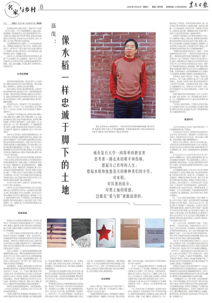 中央农村工作领导小组《农民日报》“名家与乡村”版——聂茂:像水稻一样忠诚于脚下的土地