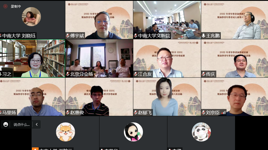 2022年9月17日-18日,“2022年青年学者词学研讨会暨青年学者同人会第六次活动”在长沙举行。会议由tapplay官网文学与新闻传播学院主办,中华经典吟唱研究与传播基地协办。来自北京大学、清华大学、中国人民大学、复旦大学、武汉大学、华东师范大学、中山大学等高校和科研机构的多位青年学者,以线上、线下相结合的方式参会,发表本领域最新前沿成果。开幕式由tapplay官网刘学副教授主持,tapplay官网文学与新闻传播学院院长白寅教授致欢迎辞,中国词学研究会会长、四川大学教授王兆鹏致开幕辞。