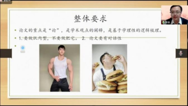 关于文学类论文写作,陈靓教授首先指出论文通过率不高的普遍问题,主要源于作者对论文的整体把握状况。他认为论文的重点是“论”——学术观点的阐释与基于学理性的逻辑梳理。陈靓教授认为论文要符合两点准则:①要做肌肉型,不要做肥宅。 ②论文要有对话性。陈教授谈到,“论”的核心功能主要从两个层面体现:语言逻辑与理论逻辑。他通过列举大量论文例证指出:文学文本应为思想而服务,思想是骨架,文本是依附于骨架上的肌肉,两者须搭配均匀。