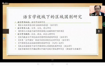 (1)语言学视域下的区域国别研究。陈教授重点谈论将语言作为知识、工具和路径三种层面研究,他指出,不要拘泥当前的东西语言政策规划与区域国别,不仅要把研究当作学术性东西,也要思考如何落地的问题。