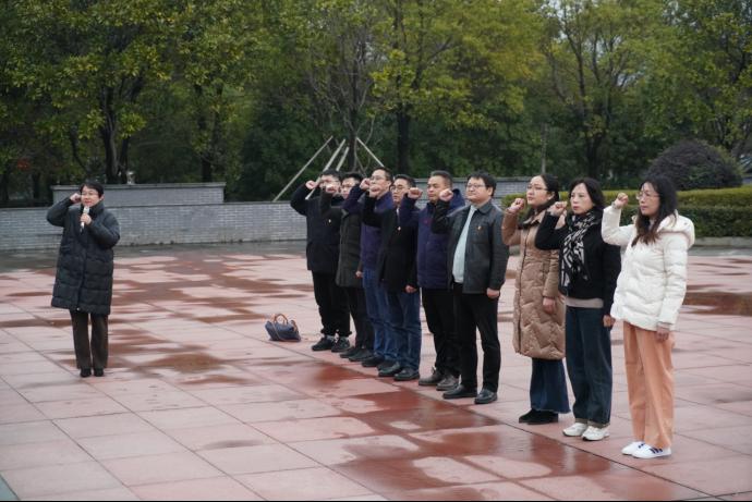 罗军飞一行首先来到任弼时铜像广场敬献花篮,重温入党誓词。