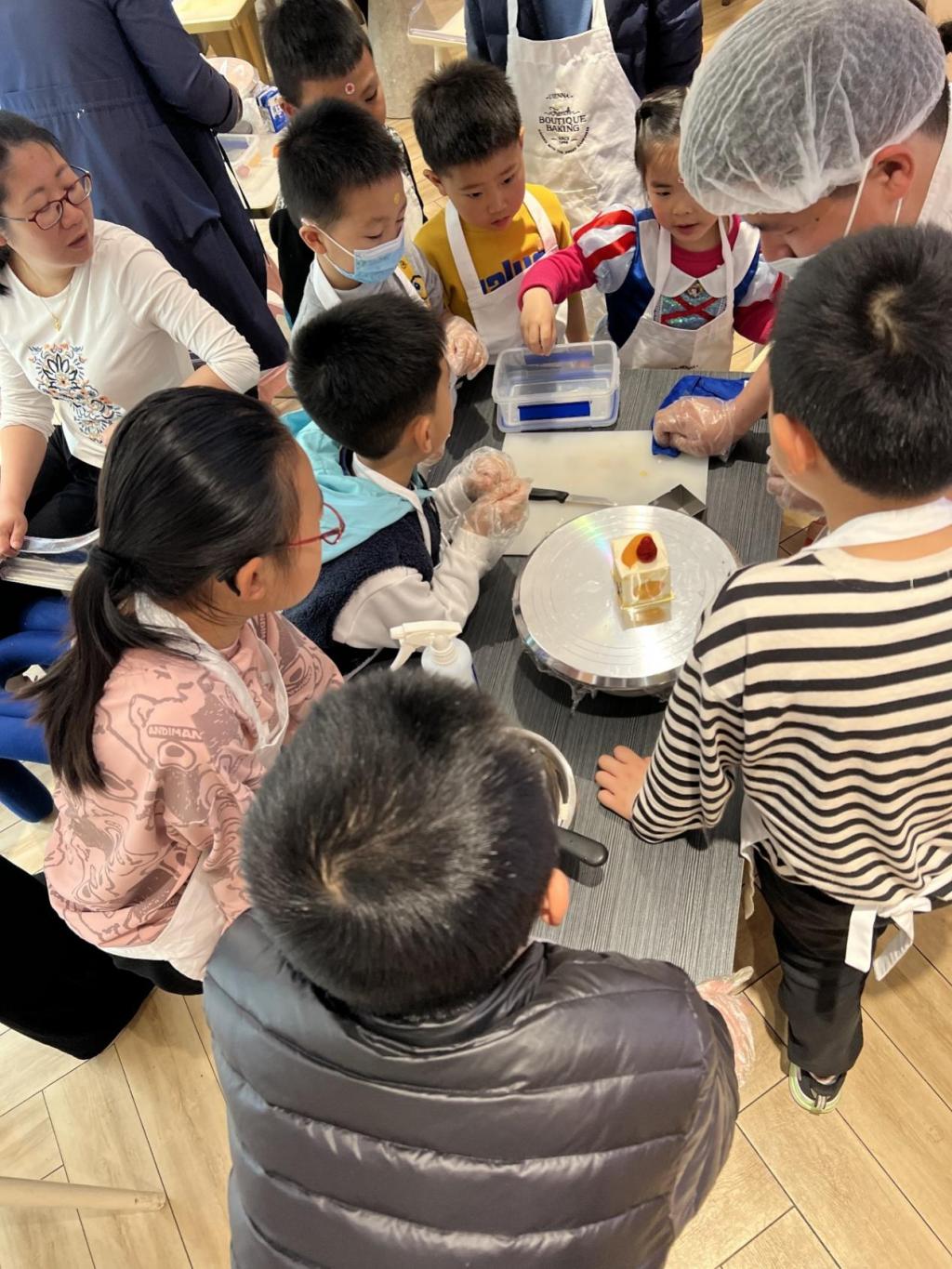活动当天,工作人员为小朋友们发放原材料和制作工具,烘焙师耐心地给小朋友和家长们讲解蛋糕烘焙的相关知识和注意事项,展示蛋糕制作的基本过程。接着,孩子们在家长和烘焙师的点拨下,充分发挥自己的创意,开始着手奶油裱花、水果装饰等流程。活动现场欢声笑语不断,一个个充满创意的小蛋糕在孩子与父母的亲密合作中新鲜出炉。