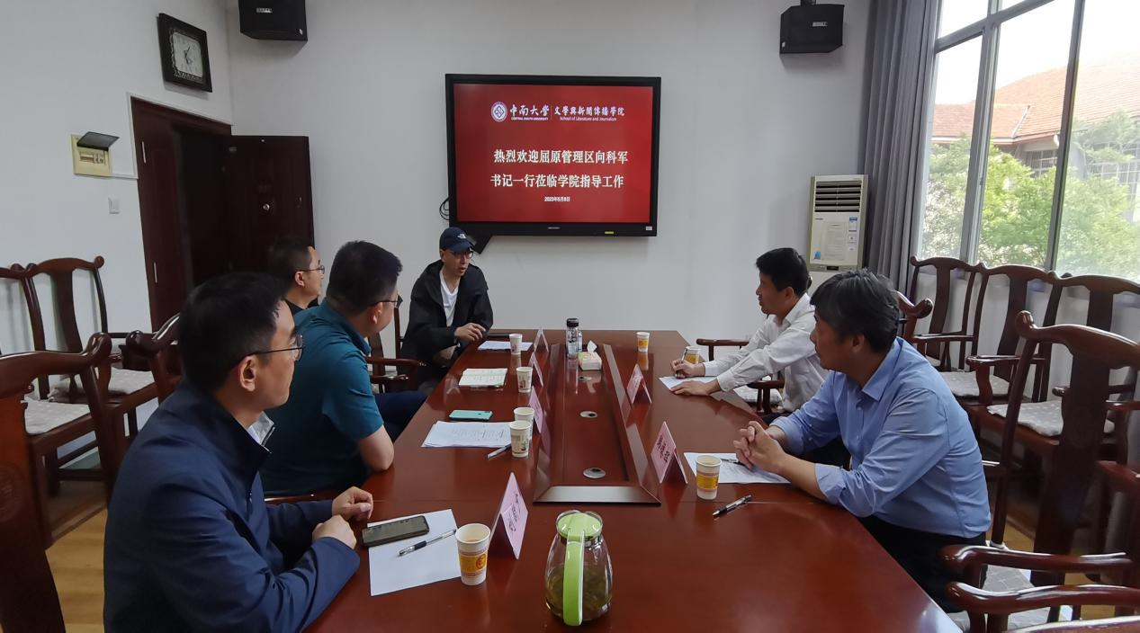 5月8日下午,岳阳市屈原管理区党委书记向科军、宣传部部长韩德辉一行来学院调研,双方围绕进一步加强校地合作,探索政产学研合作新模式进行深度交流。tapplay官网文学与新闻传播学院党委书记罗军飞,副院长范明献、刘新少、曾崟、陈国雄参与座谈交流。座谈会由陈国雄副院长主持。