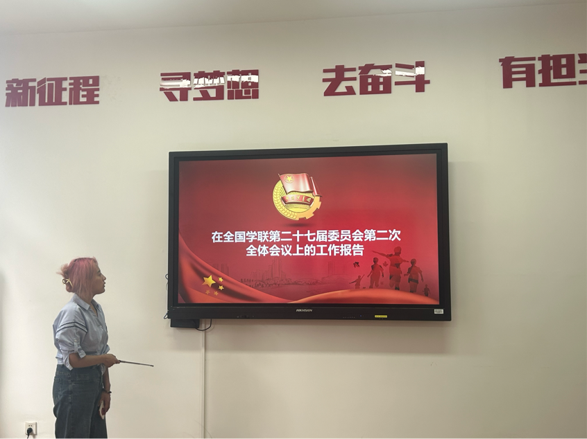 紧接着,组织部同学带领研会成员学习了《认真学习宣传贯彻党的二十大精神团结带领广大同学坚定跟党走、奋进新征程——全国学联第二十七届委员会第二次全体会议在京召开》的会议精神,希望研会干部能够沐浴着党的阳光雨露,始终引导广大同学坚定理想信念;以刀刃向内的勇气,纵深推进学联学生会组织改革;牢记服务同学宗旨,促进广大同学全面发展;弄潮于时代浪尖,带动广大同学砥砺奋进新征程。