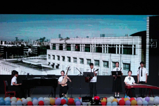 乐器合奏《起风了》将中西乐器巧妙结合,民乐的典雅秀丽与西洋乐轻快悠扬让这首歌有了一种别样的风味;由小提琴伴奏带来的歌曲串烧《昨日少年,筑梦青空》唱出了文新学子对热爱的坚守、对青春的回望,传达出毕业生们淡淡的惆怅之情;毕业生王彦澄同学带来的歌曲独唱《你的微笑》扫去了先前伤感的愁绪,她用嘹亮的歌声与大方的笑容展示着文新毕业生的乐观与自信:少年何惧道阻且长,只一笑,万愁消!台下的观众深受感染,合着熟悉的旋律纷纷和唱起来,现场洋溢着欢乐与温情。