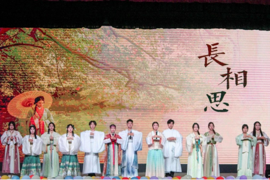 相聚离别,本是平常;世事如烟,聚散有时。吟唱团带来的吟唱曲目《长相思·送别》曲调婉转悠扬,最后一句铿锵有力的“莫愁前路无知己,天下谁人不识君”大声道出了毕业生们即使面临分别,仍然勇敢向前的底气与豪迈。愿文新学子乘风而上,随势而起,追梦千里,归来仍少年!