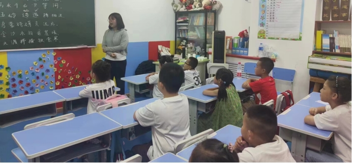首先,推普团队带领苹果园的孩子们朗诵、背诵、赏析了经典红色诗歌。团队为孩子们详细讲解了现代红色诗词《七律·长征》、《沁园春·雪》、《沁园春·长沙》三首经典红色诗歌,并从作者简介、写作背景、诗词意蕴、爱国主题四个方面展开做了详细的介绍。
