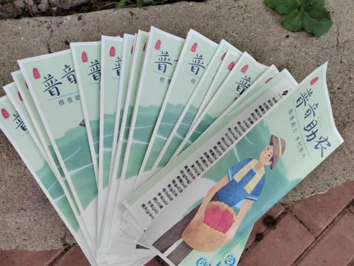随后,团队为各位村民发放了团队设计的普通话易错字词手册,手册内容包含了常见的易错单音节和多音节字词与对应的正确拼音。
