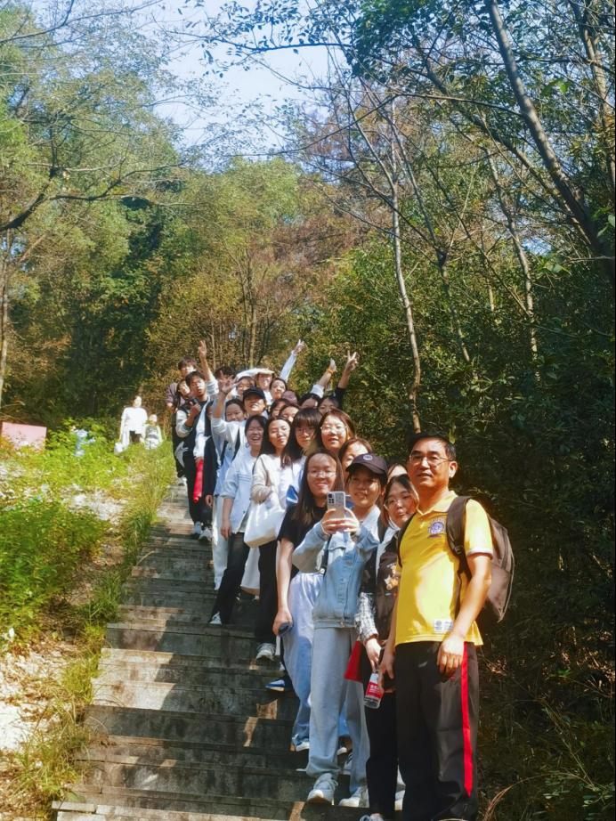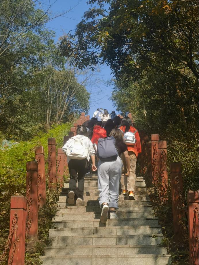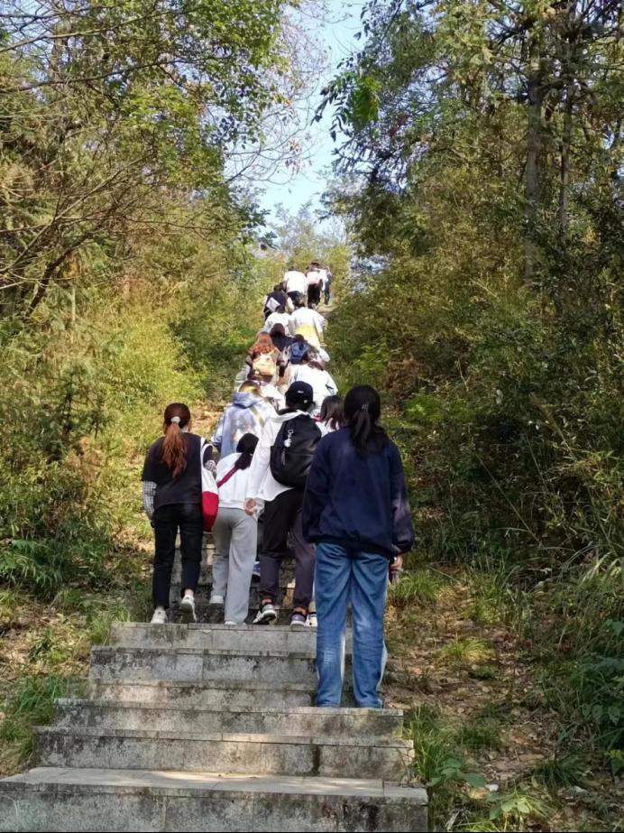 无惧艰难,方显勇毅;惟其磨砺,始得玉成。行进过程中,大家经历了弯曲小路、上坡下坎、汗流浃背、肌肉酸痛、疲惫不堪,但在刘院长的榜样鼓舞下,同学们都毫不畏惧,互相扶持、互相帮助,奋力前进,越过一段又一段的陡峭台阶,在克服一个又一个的难题中深刻体会到徒步精神之所在。