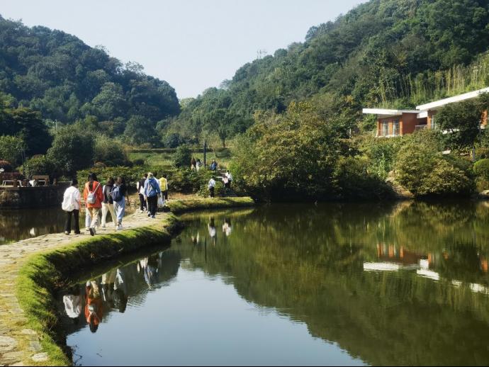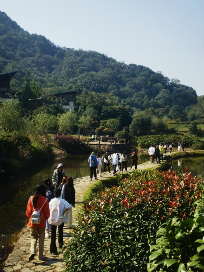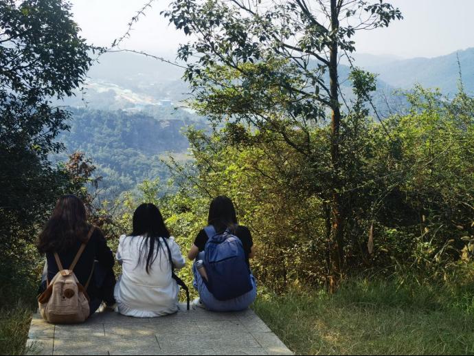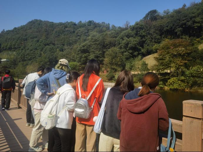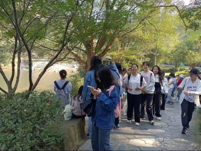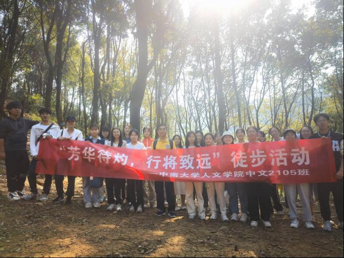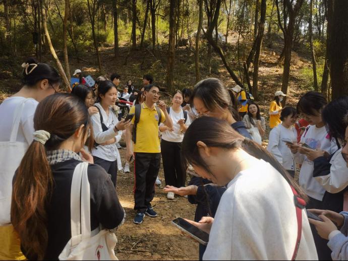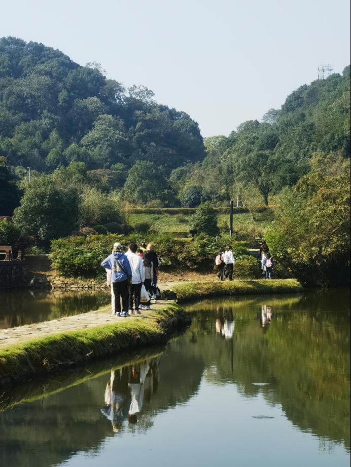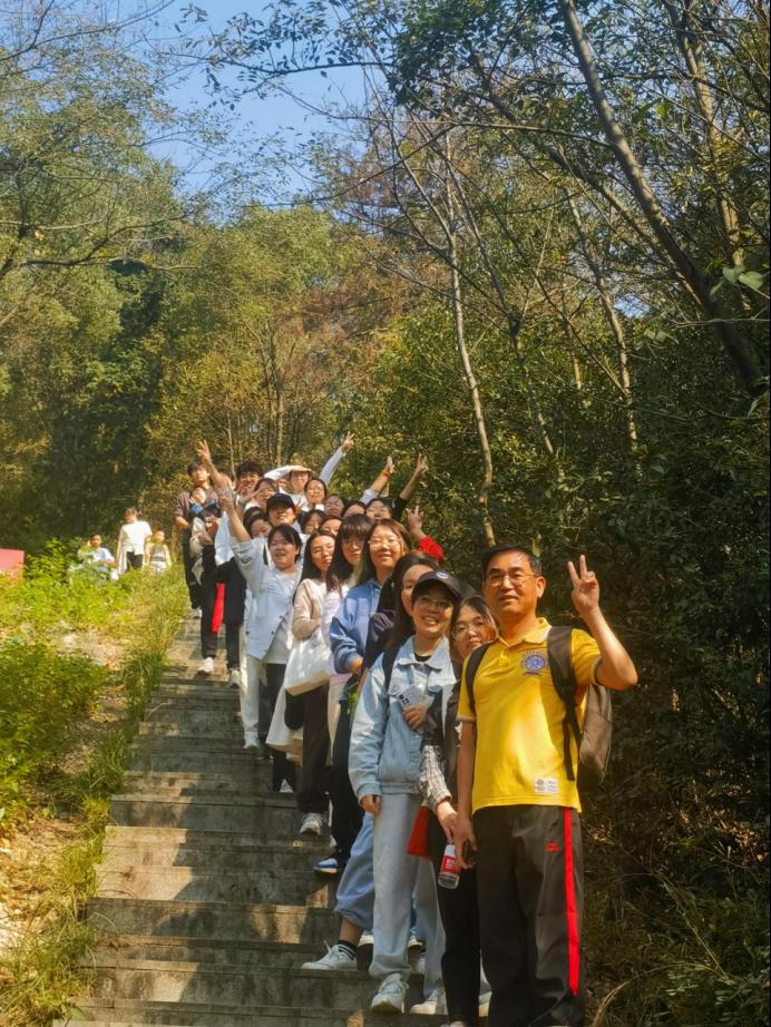 徒步不只有单调的步程,还有一路欢笑一路歌。通过此次活动,桃花岭的美景以另一种视角映入眼帘,让人不禁驻足流连。大家依次抵达了水库、虎山亭等地点,游鱼流水、绿树红亭,步履所至、目光所及之处,皆为美丽画卷。途中刘院长与同学们亲密交流杨梅树等生活趣事,互相分享水果零食补充体力。斑驳阳光洒落林间,大家齐唱《孤勇者》等流行歌曲,拉近了心与心的距离,进一步增强了班级凝聚力与团结力,在欢声笑语中突破自己,在意气飞扬中奔赴终点。