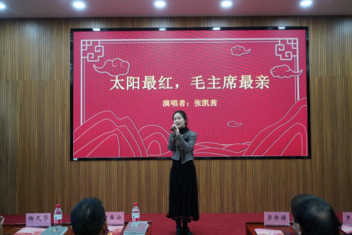 演诵会还穿插女声独唱《太阳最红,毛主席最亲》,以及民乐演奏节目《北京的金山上》等文艺节目,以此表达对一代伟人的热爱,并传递对伟大时代的祝福。