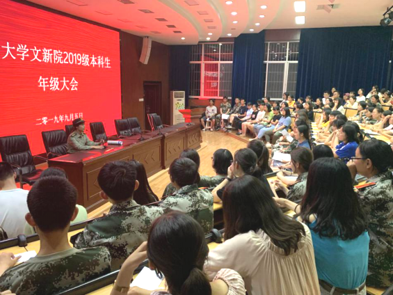 本次大会明确了2019级新生军训期间的工作要点,也使全体新生意识到大学生活不是用来享乐的,只有适应了开学阶段紧张有序的环境,才能为今后四年,甚至更长的大学生涯打好基础。本次大会对于军训期间的合唱比赛及其他各项工作的安排具有很强的指导意义,是文新院2019级本科生各项工作的良好开端。