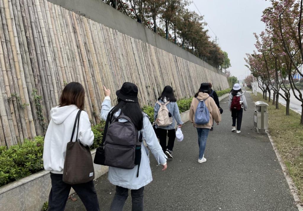 上午8点整,同学们携带相机准时从学校南校区出发。正值春季,道路两侧的花草树木都呈现出生机勃勃之态,同学们一边向目的地进发,一边用相机记录下这春意盎然的景色。吃过午餐并短暂地休息后,同学们继续向目的地前进。