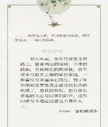 “知心小屋”系列活动自10月6日开始,历时近两月,于12月18日圆满结束。本次活动完全采用线上的形式,通过文新院心助会官q文小心发布活动讯息与结果,受到了同学们的热烈欢迎。活动分为五期,分别以“初入中南的新体验新见闻”“校园里的秋色” “你和旧物品之间的故事”“寒冬中的温暖瞬间”“如何处理‘考前焦虑症’”为主题,贴近同学生活,极大调动了同学们的积极性。文新院同学们以斐然的文采简短地叙述了多则暖心小故事,流露的温情给读者传递正能量。每期活动的尾声,文新院心助会都为投稿并入选的同学派发精美的礼品,鼓励大家继续踊跃参加。