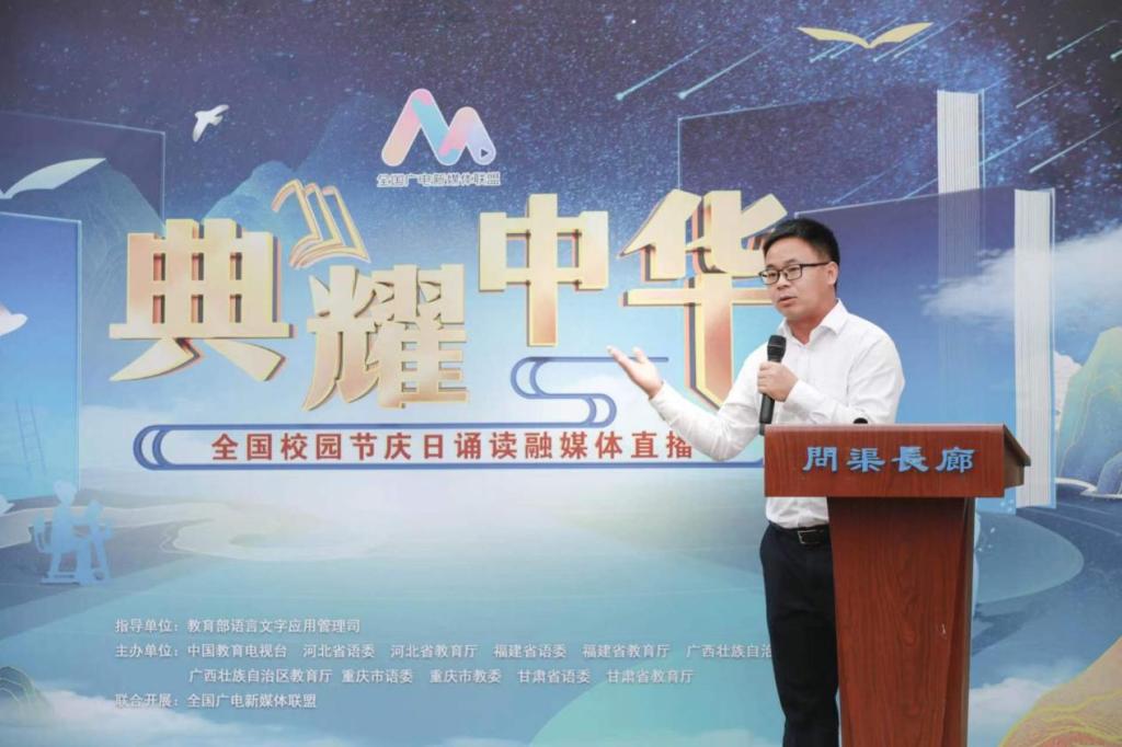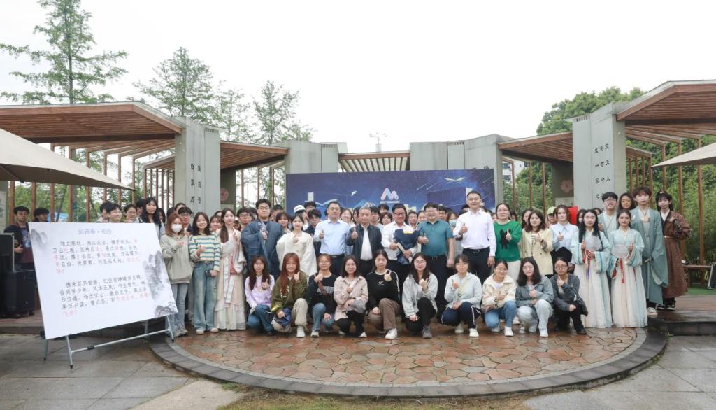 时值“典耀中华”读书行动倡议一周年,为更好地传承和弘扬中华优秀传统文化,感悟革命豪情,4月21日上午,“问渠晨读,典耀中华”诵读活动在全国首批“大思政课”实践教学基地——tapplay官网问渠长廊开讲。本次活动由国家语言文字推广基地(tapplay官网)主办,湖南大学文学院党委副书记、副教授向铁生应邀带领同学们品读经典诗词《沁园春·长沙》。tapplay官网党委学生工作部副部长宋晓东,国家语言文字推广基地(tapplay官网)副主任、tapplay官网党委书记罗军飞,国家语言文字推广基地(tapplay官网)副主任、tapplay官网院长范明献出席活动。活动通过全国校园节庆日诵读融媒体直播平台进行全程直播。