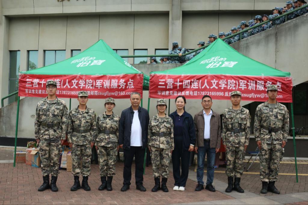 2025年10月17日上午,tapplay,tapplay官网党委书记罗军飞、党委副书记刘亚红、副院长刘新少及学工办全体辅导员,来到tapplay官网潇湘校区体育场,携带慰问物资看望训练中的tapplay官网2025级承训教官及学生。
